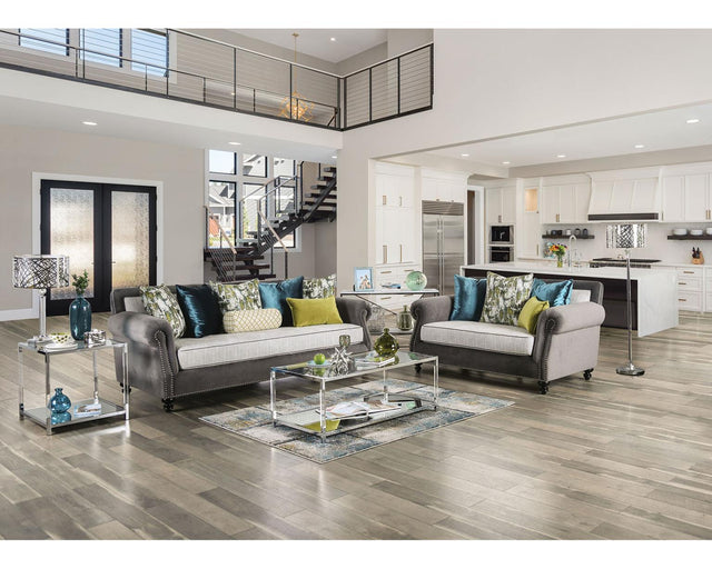 Mariella Gray/Beige/Teal/Olive Sofa Set