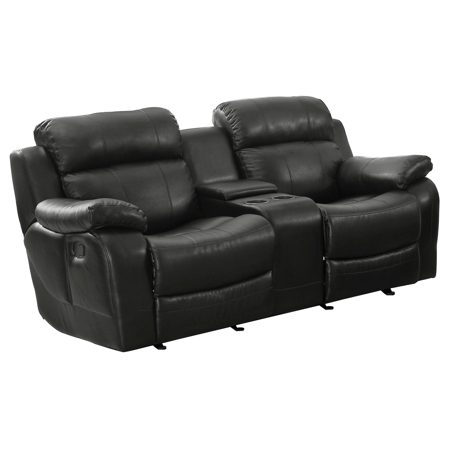 In the marille collection, your convenience and comfort are taken care of with features like as the reclining love seat's longer length. the collection benefits from the addition of drop-down cup holders, which expand its use. the line is available in a faux leather that looks like black leather.