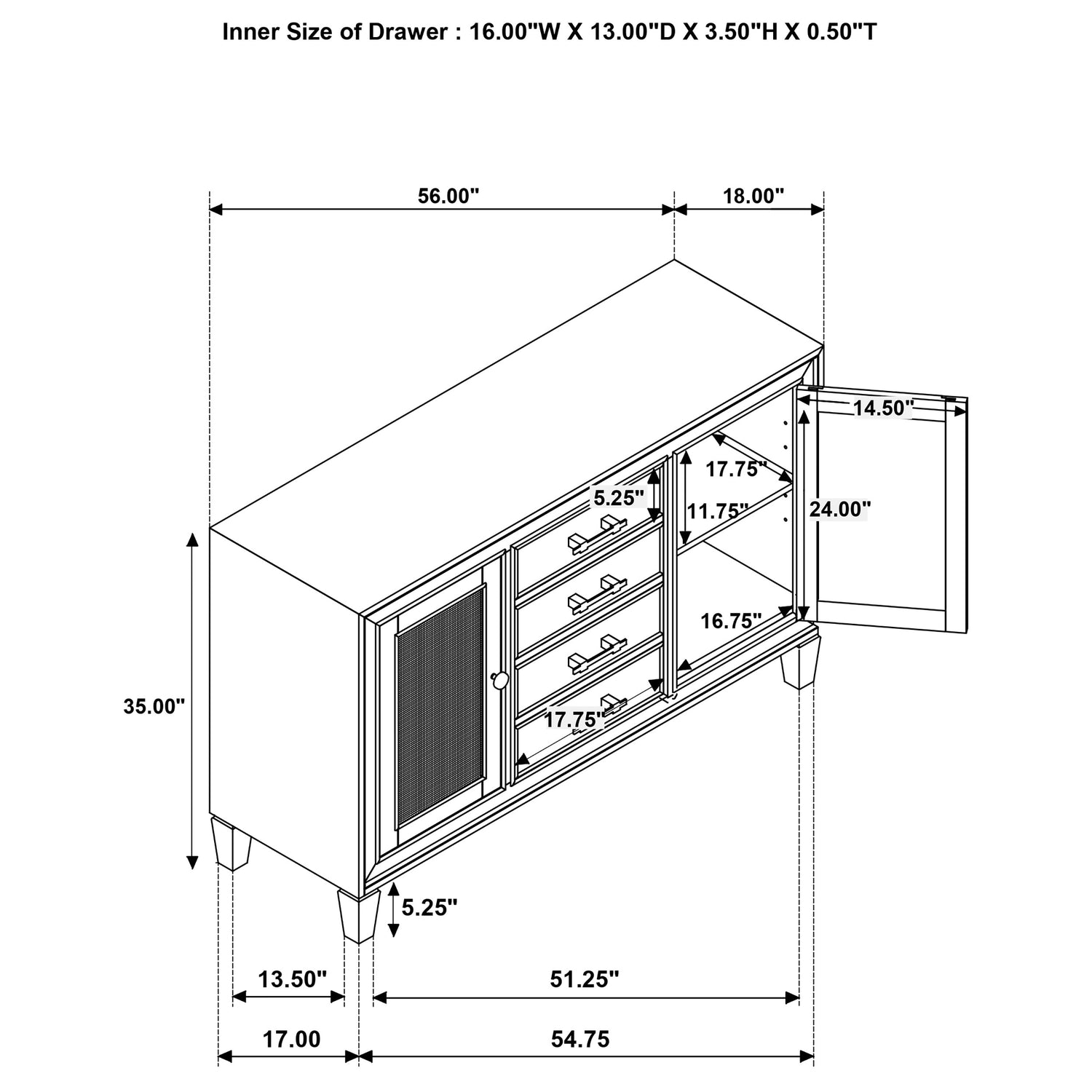 - Item Name: Matisse 4-drawer Sideboard Buffet Cabinet Light Brown