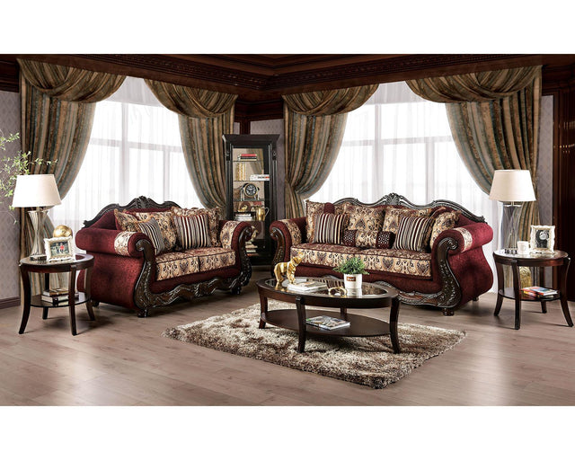 - Item Name: Matteo Burgundy/Brown Loveseat