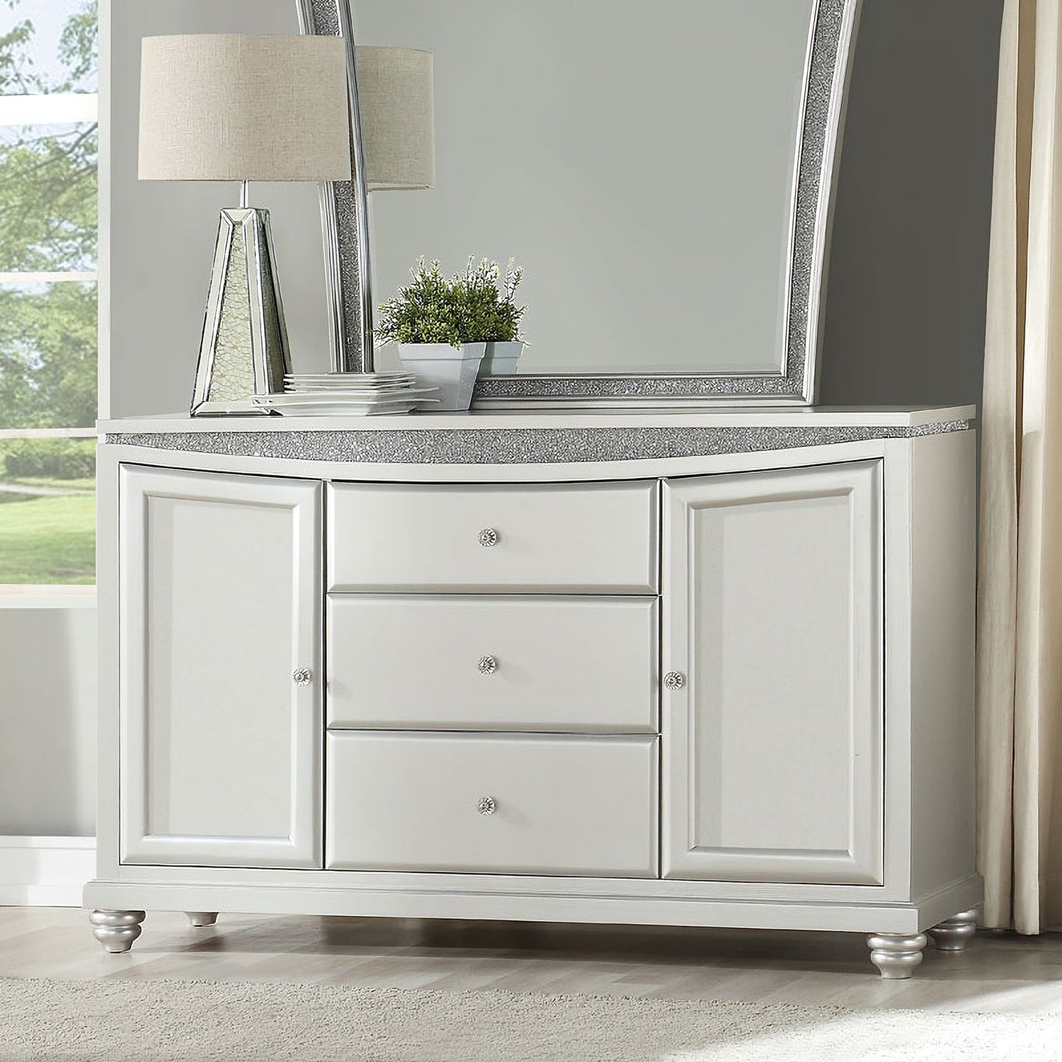 - Luxurious platinum finish adds a touch of elegance to any bedroom