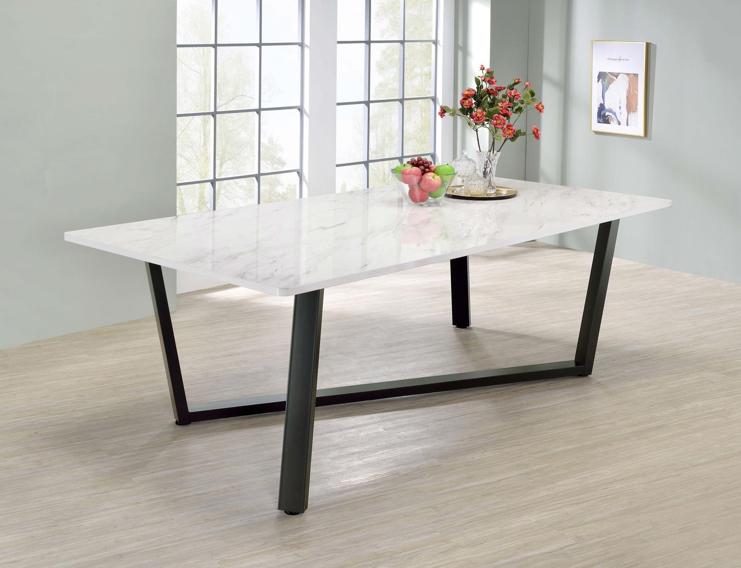 Mayer Faux White Marble And Black Dining Room Set - 3 Piece Set is backordered and will ship as soon as it is back in stock.