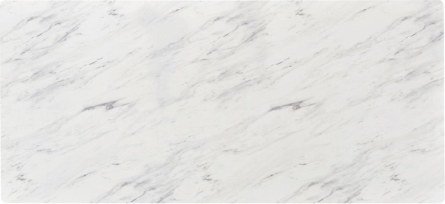 - Table has a faux white marble paper with polyurethane sealer and a gunmetal powder coated metal base