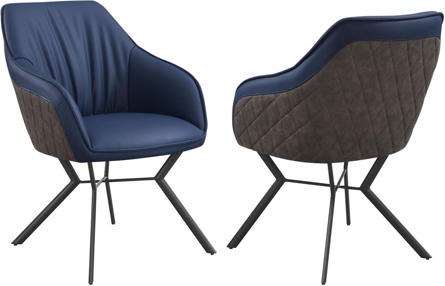 - Chair back has contrasting cover in diamond quilted brown suede-like leatherette while front has blue leatherette cover