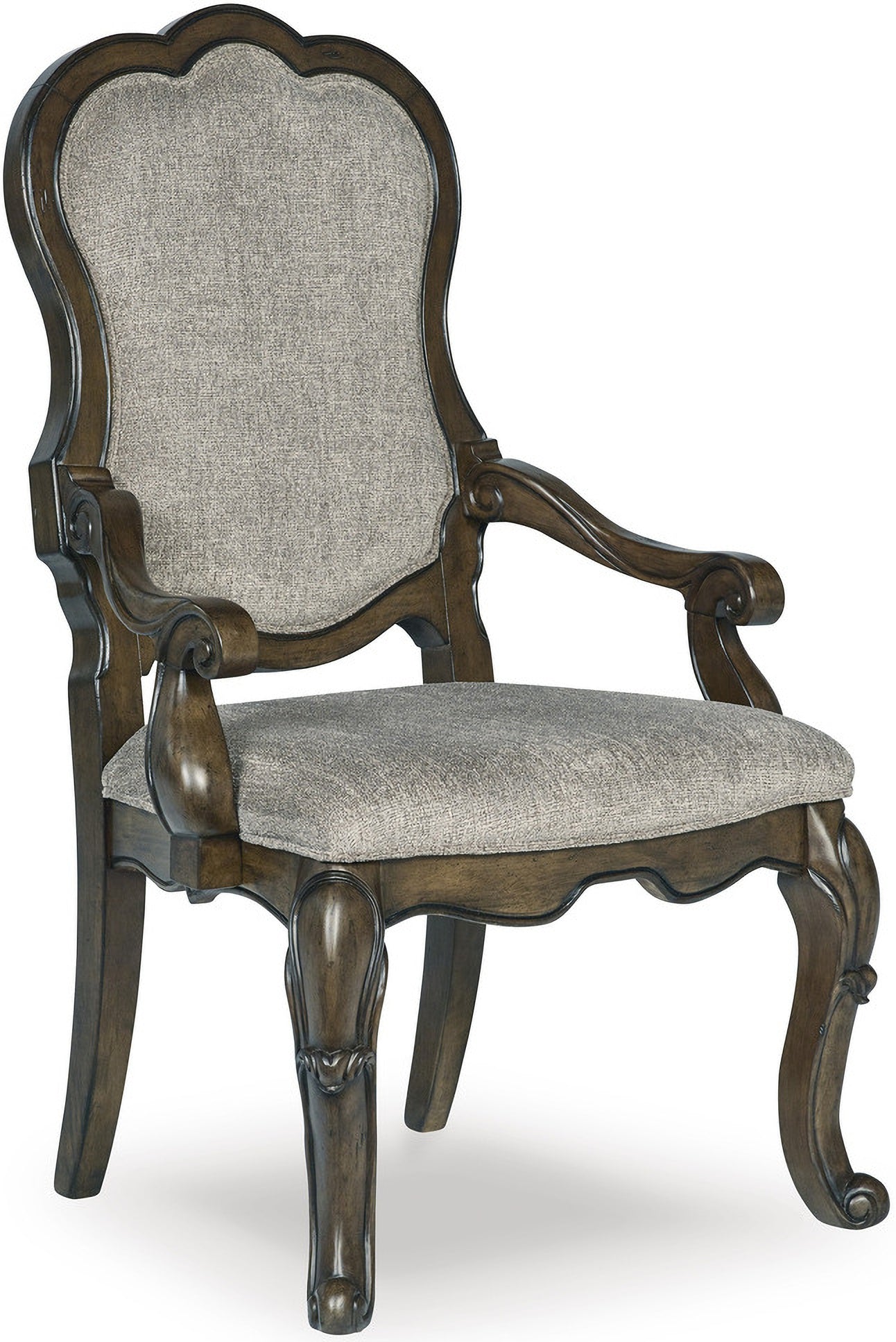 - Chair features crafted from wood and cast resin, foam cushioned seat with polyester upholstery and ornate cabriole legs