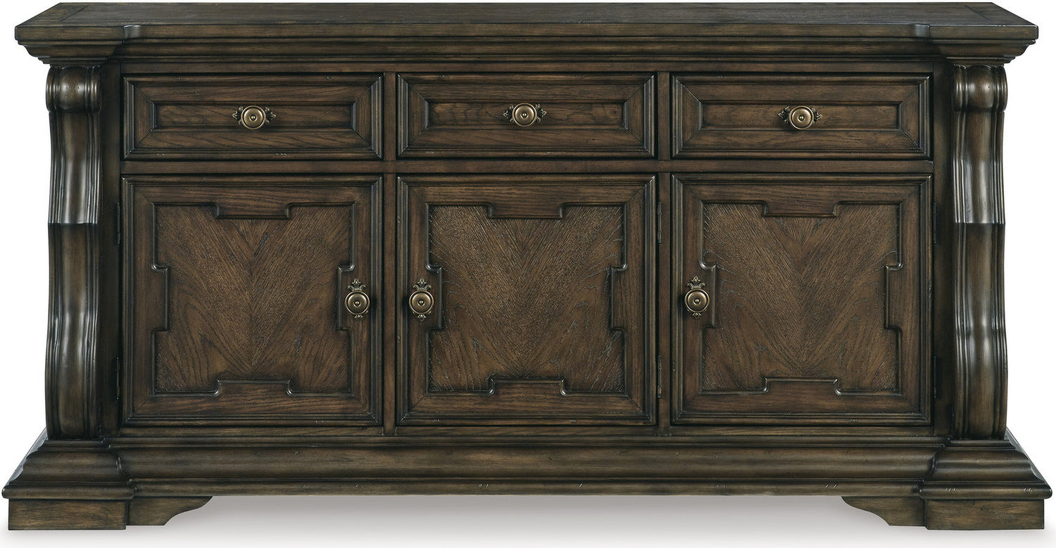 - Buffet features 3 cabinets, each with single adjustable shelf, 3 smooth gliding drawers with felt lining