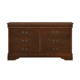 The beautiful mayville collection derives its design cues from the timeless louis philippe fashion, which results in a collection that is both classic and understated in its appearance. the dresser features an okume veneer that is complemented with a brown cherry finish. additionally, the dresser features drop handles in an antique brass tone.
