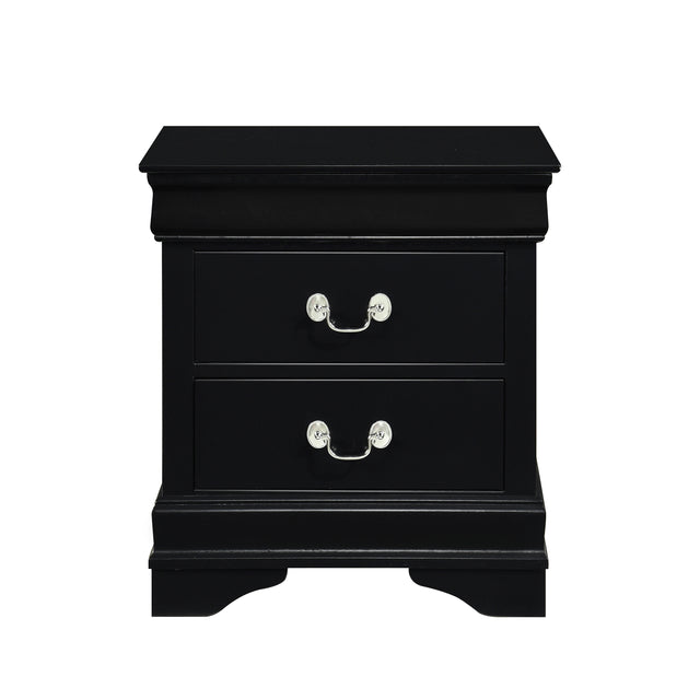 The beautiful mayville collection derives its design cues from the timeless louis philippe fashion, which results in a collection that is both classic and understated in its appearance. the nightstand has an okume veneer that is complemented by a black finish, and it is further accented by drop handles that have an antique nickel tone.
