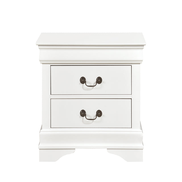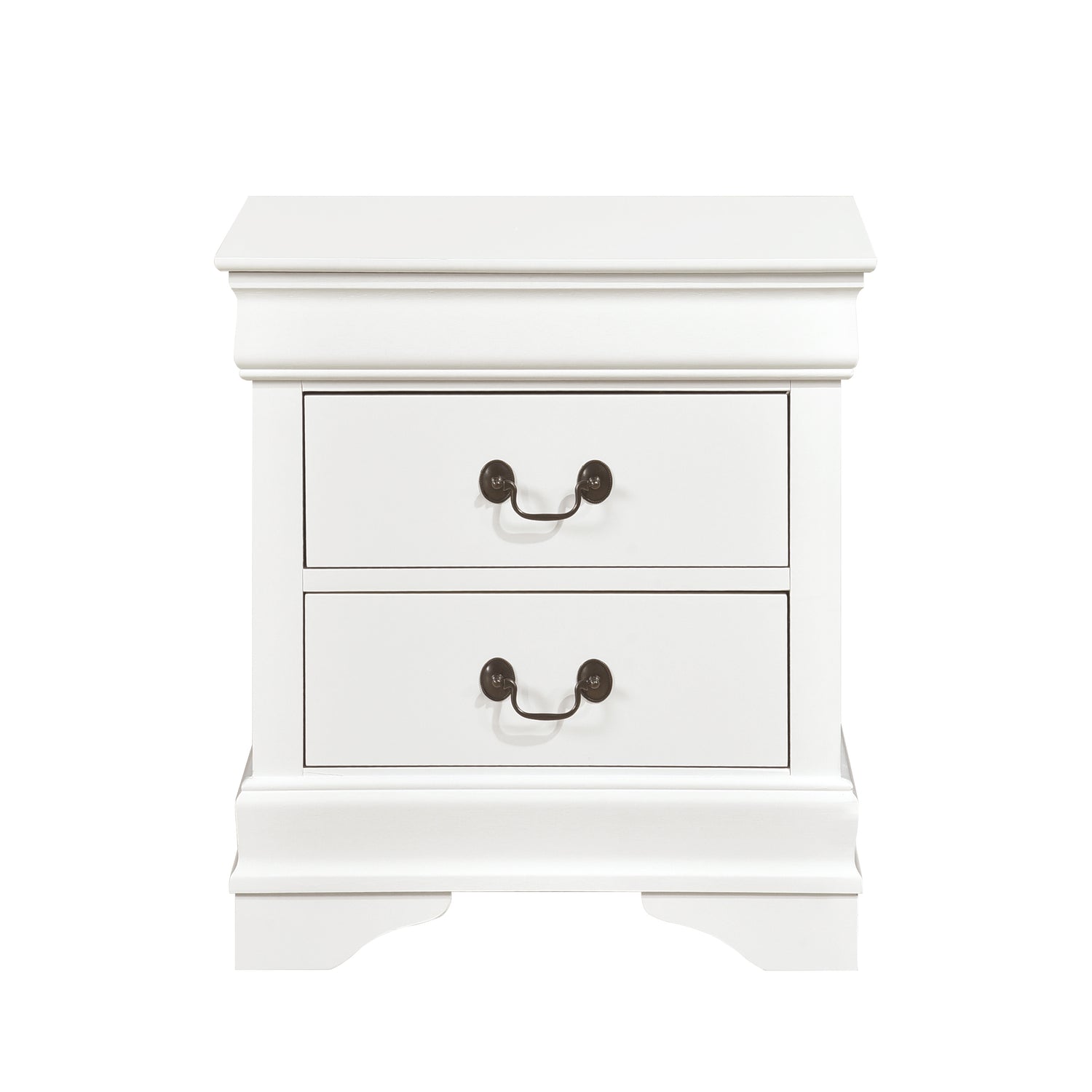 The beautiful mayville collection derives its design cues from the timeless louis philippe fashion, which results in a collection that is both classic and understated in its appearance. the nightstand features an okume veneer that is complemented by a white finish and is further accentuated by drop handles that have an antique bronze tone.