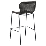 Designed with a mid-century-inspired aesthetic, this contemporary stool offers a charming brown faux rattan seat, nestled in place by an open, airy frame. The seat offers a subtle contoured shape that cradles the torso and offers a comfortable place of rest. Supporting the seat are slender tubular legs in a sandy black finish, pushing the dark tones and hues to create a dramatic, moody feel. Natural elements collide to offer a boho-inspired touch to bars, breakfast nooks and more. Pull this stool up to an elevated dining space for a casual seating arrangement.