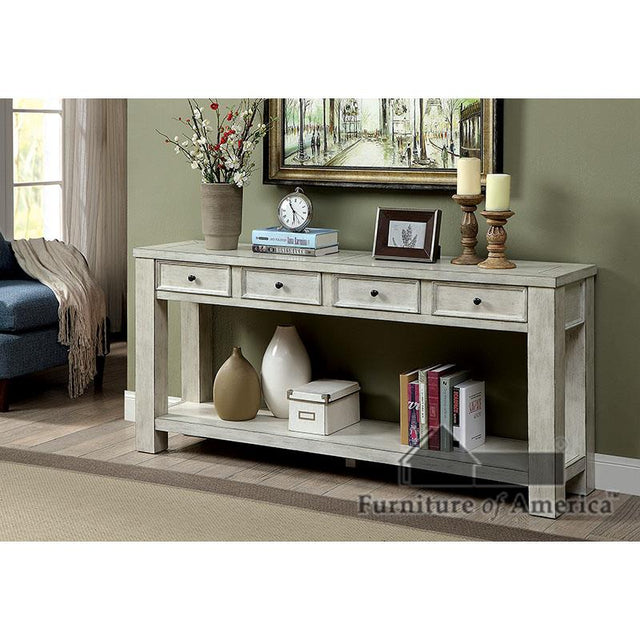 This timeless table design features a warm oak finish that draws attention to the plank style surfaces and handy open shelves. The small drawers help you house valuables and keepsakes. This classic piece is a must-have to keep your home decor beautifully displayed and organized.