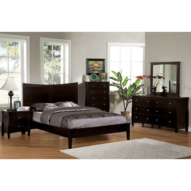 The elegant design, clean lines and the beautiful espresso finish allows the Brooklyn set to blend easily with other styles in your home. Brushed nickel knobs accent the modern curves of the chest, dresser and night stand.