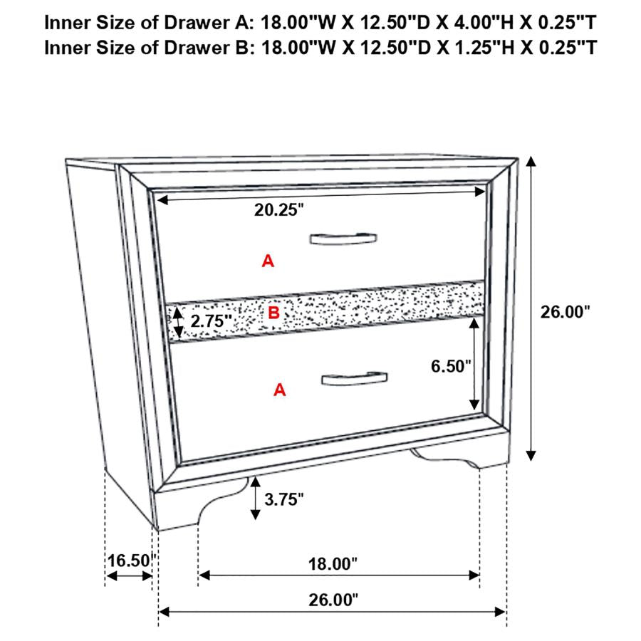 - Item Name: Miranda 2-drawer Nightstand Black