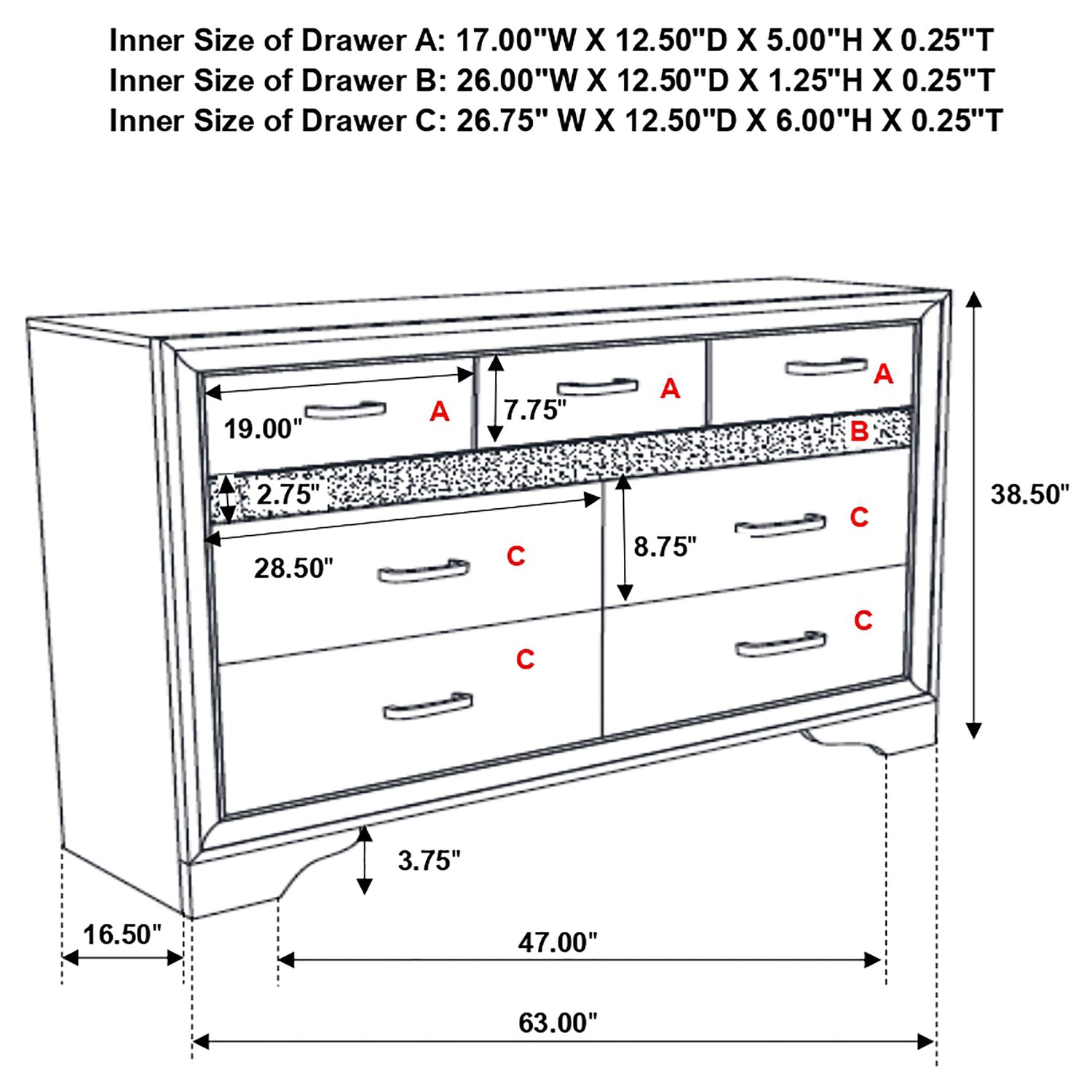 Miranda 7-Drawer Dresser Black And Rhinestone