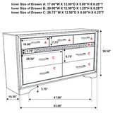 Infuse your space with sophisticated grace. The chic design of this beautiful dresser lends a touch of elegance to any bedroom. Felt-lined drawers keep delicate belongings safe and secure. A hidden jewelry drawer offers a discreet place to store your valuables. Complete with a glittery panel across the front, this piece exudes sparkling opulence.