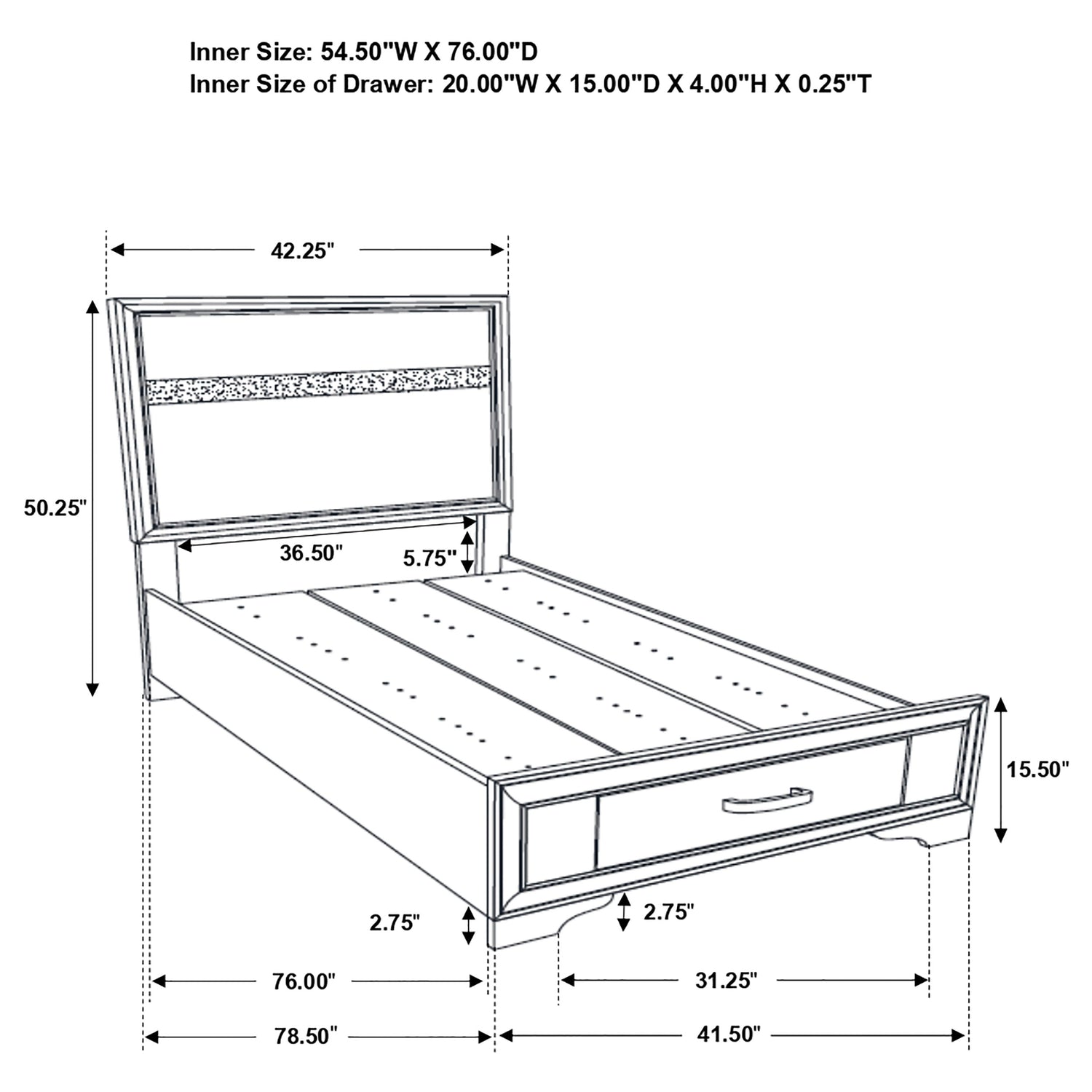 Create a stunning bedroom ensemble that's fit for modern royalty. Each gorgeous piece in this four-piece set flaunts silvery, sparkling accents for a truly glamorous look. The bed features a solid, straight silhouette and two storage drawers built into the base. The case pieces bring you even more storage space to keep your room looking neat and tidy. Available in a variety of colors and sizes, there's an option to bring any bedroom to life.