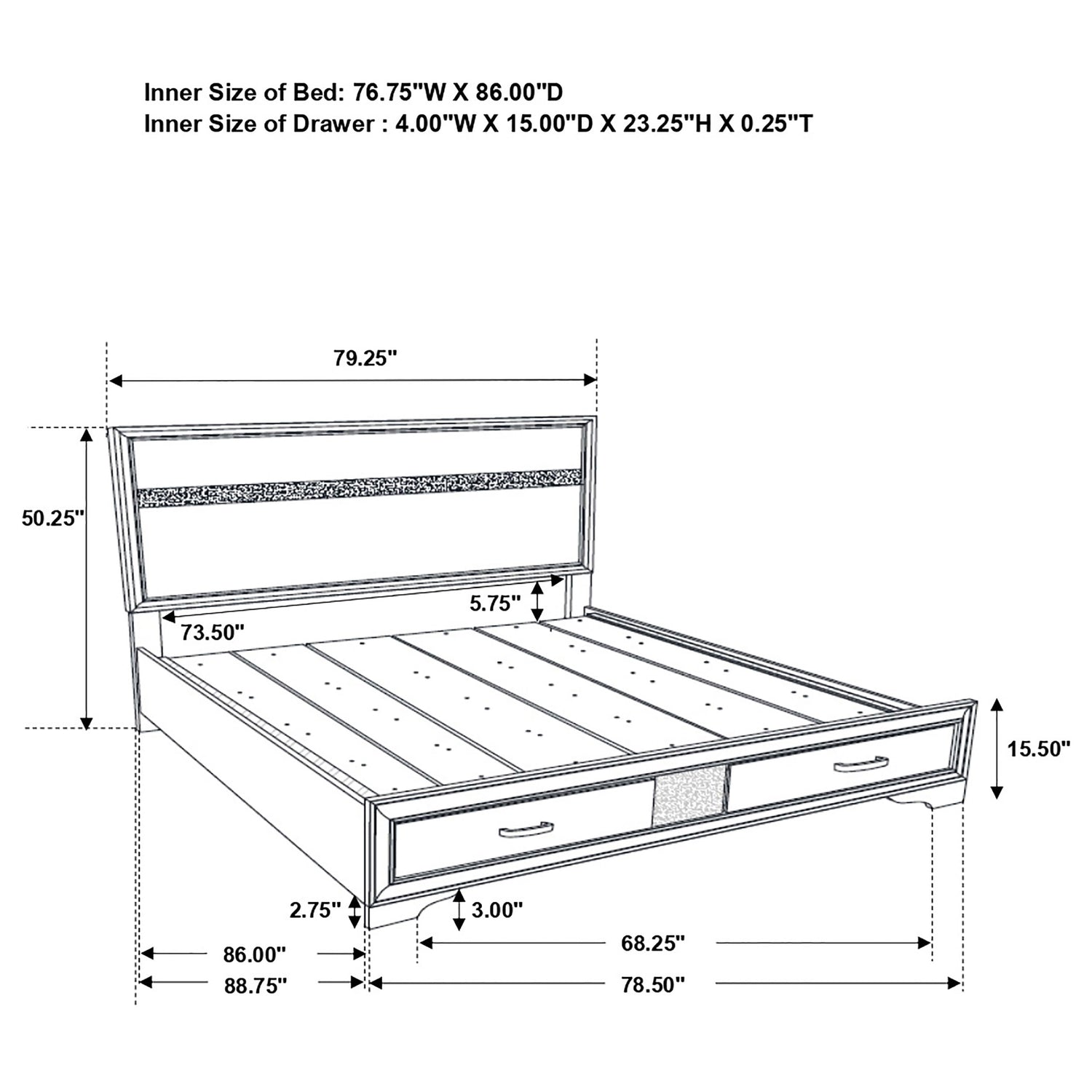 Create the bedroom of your dreams with this elegant, five-piece furniture set. Complete with a bed, nightstand, dresser, mirror and chest, it has all you need to complete your space. Each case piece includes a hidden jewelry drawer to keep valuables safe and secure. The two additional drawers built into the bed are ideal for storing shoes, bedding, clothing, and more. Each piece in this set is finished in a solid color for an appealing, monochromatic look.
