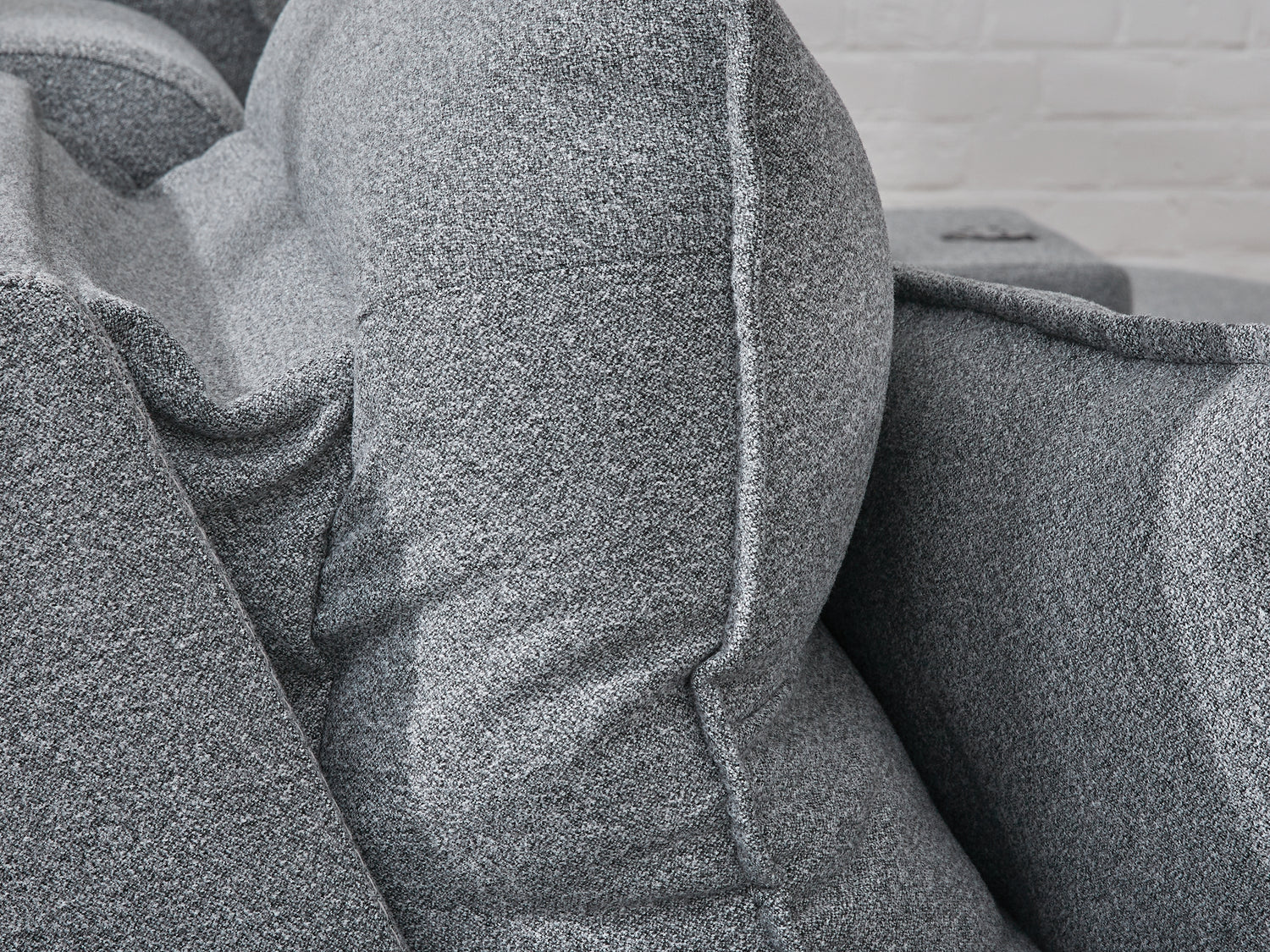 Series Features: Contemporary Next-Gen Nuvella Modmax modular sectional. Featuring the Next-Gen Nuvella true performance fabric that offers high UV protection while being bleachable as well as cleanable. This is excellent for a high traffic areas. Padded soft chenille featuring a subtle stria effect giving the material a linear patter for added dimension. Removable toss pillow jackets with heavyweight zippers for machine washing. Console with Bluetooth Audio System