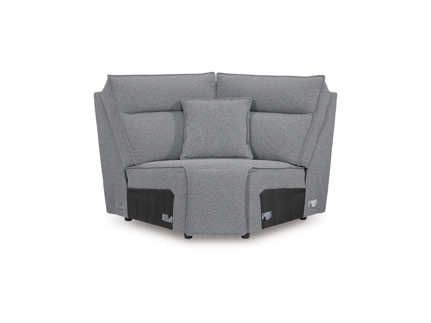 Series Features: Contemporary Next-Gen Nuvella Modmax modular sectional. Featuring the Next-Gen Nuvella true performance fabric that offers high UV protection while being bleachable as well as cleanable. This is excellent for a high traffic areas. Padded soft chenille featuring a subtle stria effect giving the material a linear patter for added dimension. Removable toss pillow jackets with heavyweight zippers for machine washing. Console with Bluetooth Audio System