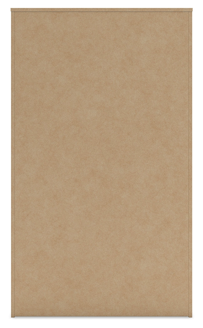 - Drawer interiors are lined with a faux linen laminate for a clean, finished look