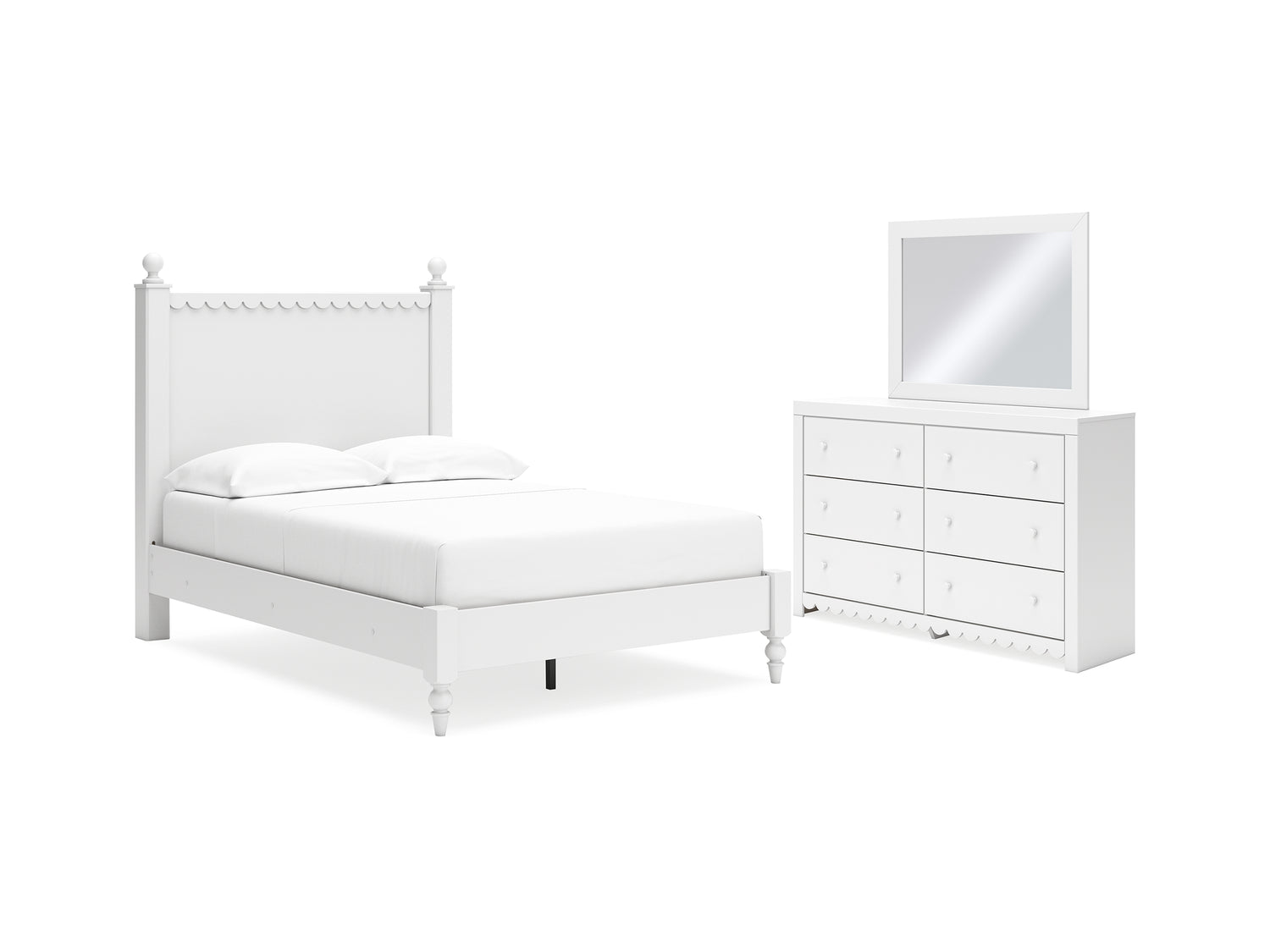 Mollviney White Full Panel Bed, Dresser And Mirror
