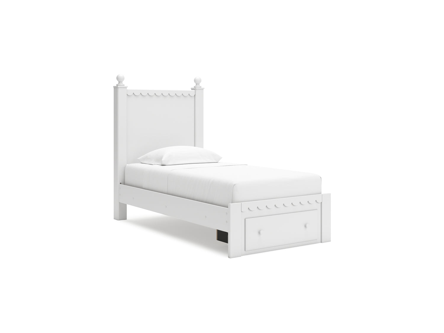 Mollviney White Twin Panel Storage Bed, Dresser And Mirror