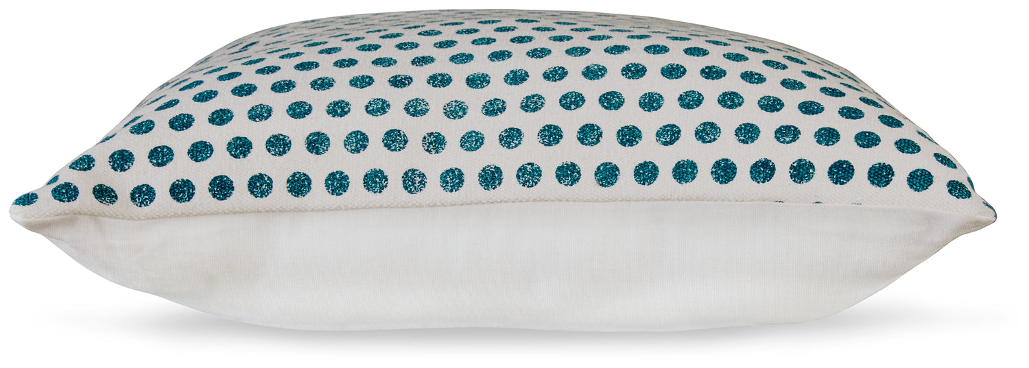 Enhance your at-home accents with the reserved excitement of this pillow. Teal dots decorate a white background, balancing a bold design with classic construction. Pairing a posh look with the plush softness you crave, this pillow makes for a cozy addition to your contemporary space.