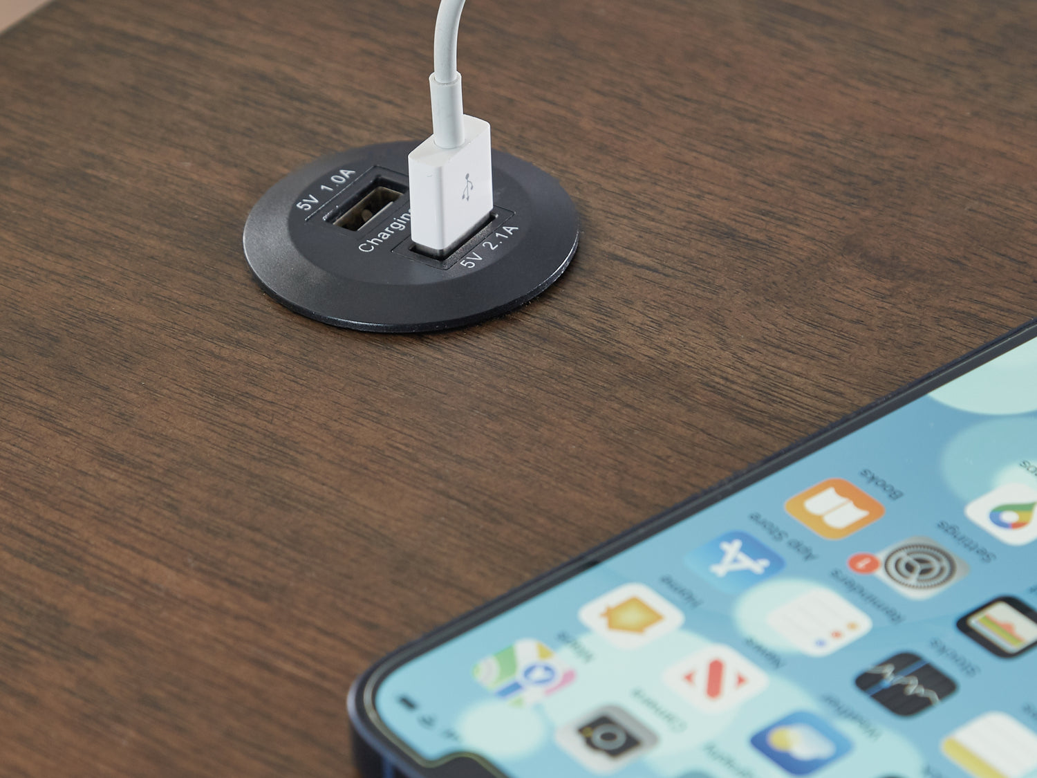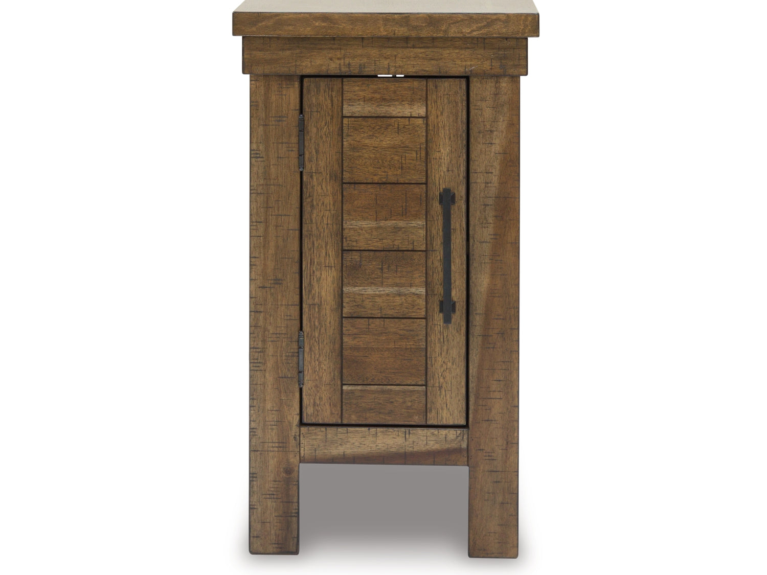 Series Features: Casual lifestyle design. Made with Acacia wood solids and veneer with MDF substrate. The tobacco brown finish enhances the natural wood grain character. T731-9 cocktail trunk features a spacious storage bin on one side and a convenient lift top for added work or casual dining space. T731-3 end table features a double door storage cabinet. T731-7 chair side table includes a single door cabinet and a 110V power supply with dual USB charging ports.