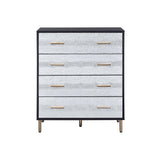 This Myles chest is a charming addition to your bedroom, with four drawers that are perfect for storing clothing and other miscellaneous items. The chest is finished in a black frame and with alluring gold hardware and legs, then accentuated by decorative drawer fronts that feature silver faux crocodile texture.