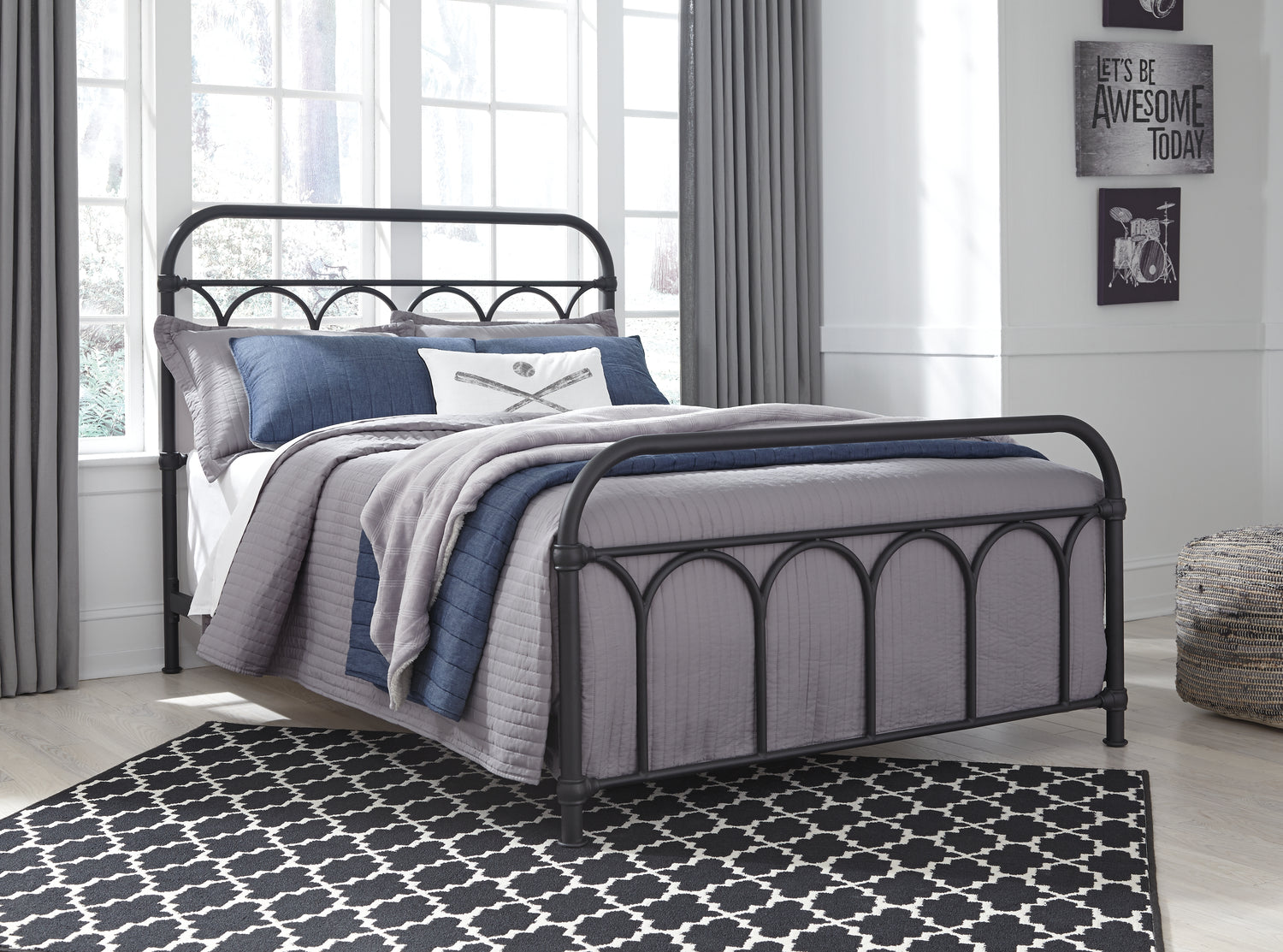 Nashburg Black Full Metal Bed is backordered and will ship as soon as it is back in stock.