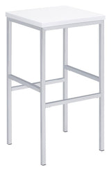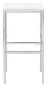 Ultra-modern with a clean lined silhouette, this five-piece bar set comes complete with a rectangular shaped bar table and four bar stools. Perfect for more contemporary home, the table comes with sleek and square legs made and a steel frame in an electroplated and polished chrome finish that lends a luxurious gleam to any room. The tabletop features a high gloss white lacquer finish and seats four people comfortable. Each stool also features a matching lustrous high gloss white seat and matching legs. One the stools are also footrests for extra support and stability.
