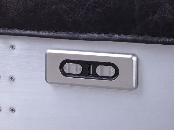 A perfect mixture of industrial style and comfort. The Nernoss Power Motion Recliner is accented by dark grain brown leather and aluminum patchwork for a complete industrial look. It features tight seat and back cushions and offers a full foam seat with pillow top armrests, giving user a warm touch and perfect feeling. You will love the pure aesthetics and textures of industrial style design.