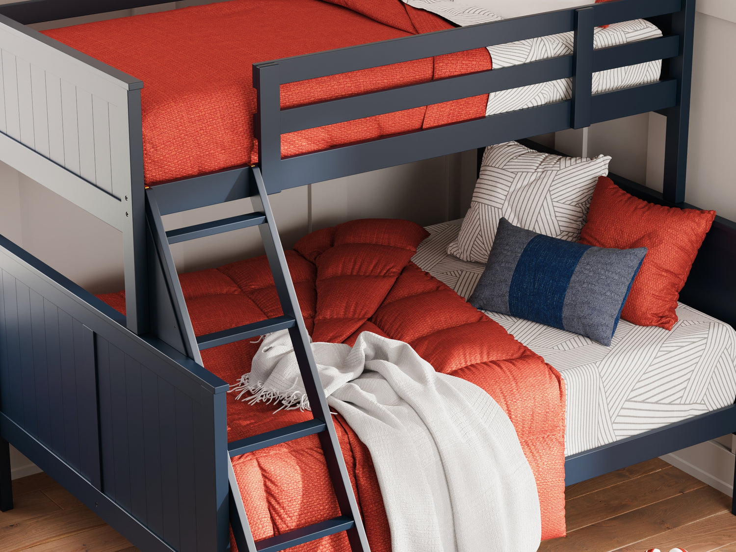 Series Features: Casual lifestyle design. Made with solid hardwood frames and MDF substrate. A timeless Shaker design finished in a choice of simple paint colors for an easy addition to any bedroom. The simplified design makes for an easy assembly process. To make the most of your space, this bunk is offered in a Twin over Twin format or Twin over Full. 1XXX- Blue, 2XXX-White, 3XXX-Black.