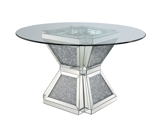 Noralie Clear Glass, Mirrored & Faux Diamonds Dining Table