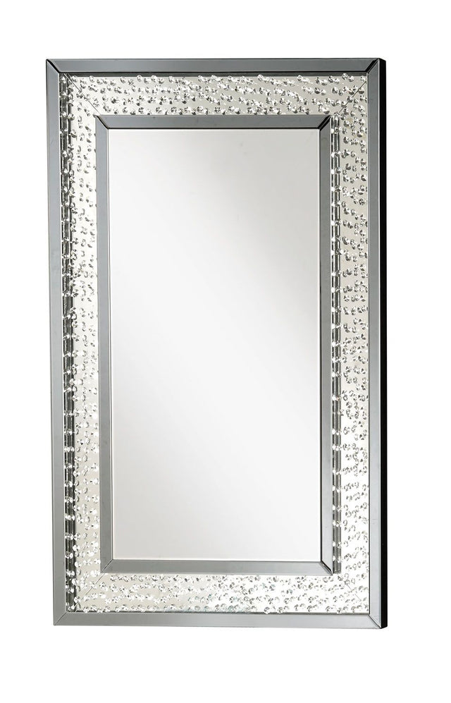 - Material: Mirror, Glass, Faux Crystals, Composite Wood