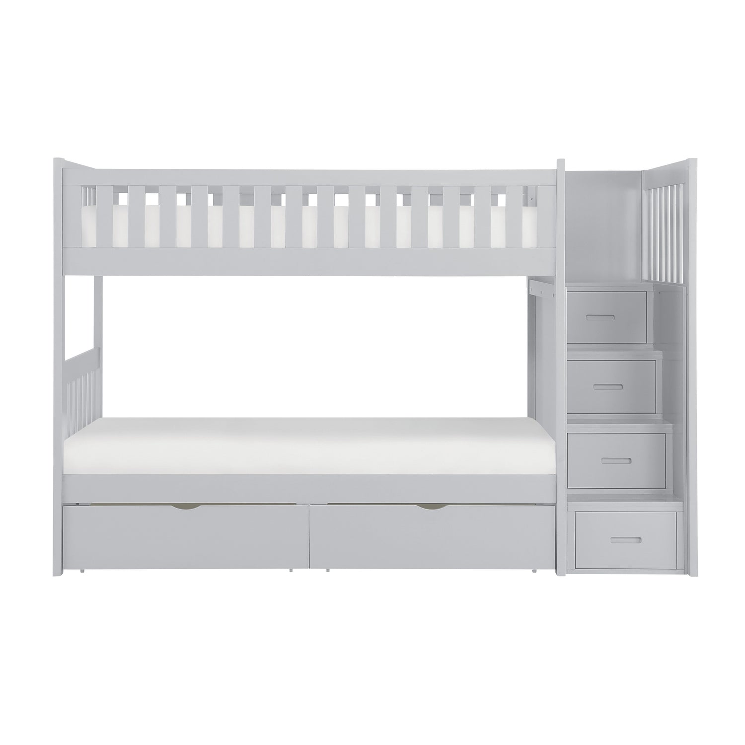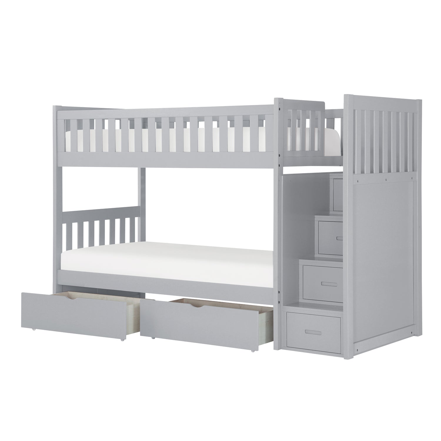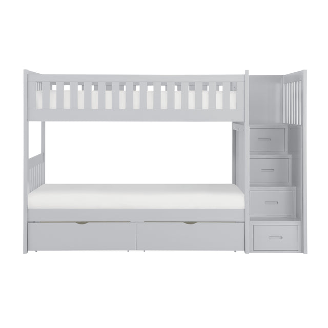 Orion Gray Twin/Twin Step Bunk Bed With Storage Boxes