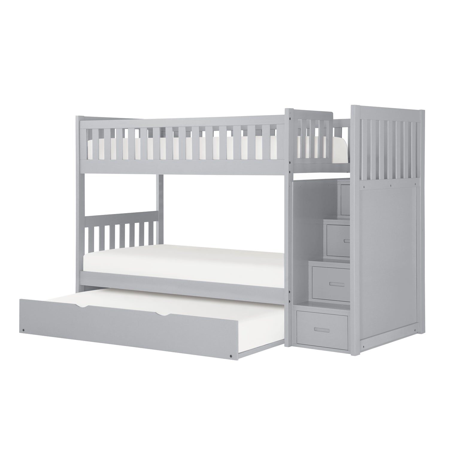 Orion Gray Twin/Twin Step Bunk Bed With Twin Trundle