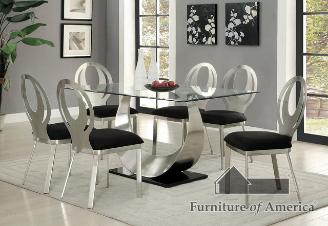 These round cut-out metal back chairs are satin plated, powder-coated and feature black foam-filled seat cushions. Combined it with its matching one-of-a-kind table, and it will make any meal feel like a fanciful feast.
