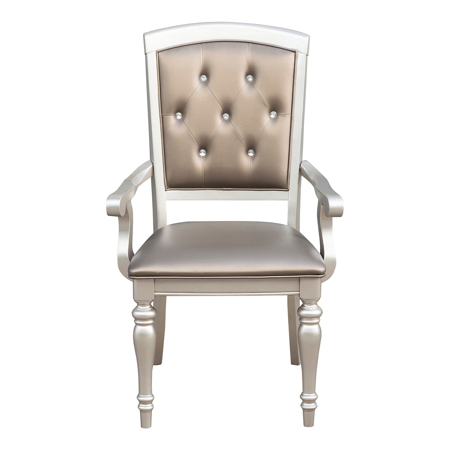 The orsina collection will wow your friends and family as soon as they enter the stylish dining environment that you have fashioned thanks to the fact that it casts a glamorous mirror of your own particular style. the seats are upholstered in pearl faux leather, which provides an appealing contrast. the crystal button tufting adds even more sparkle to the design.