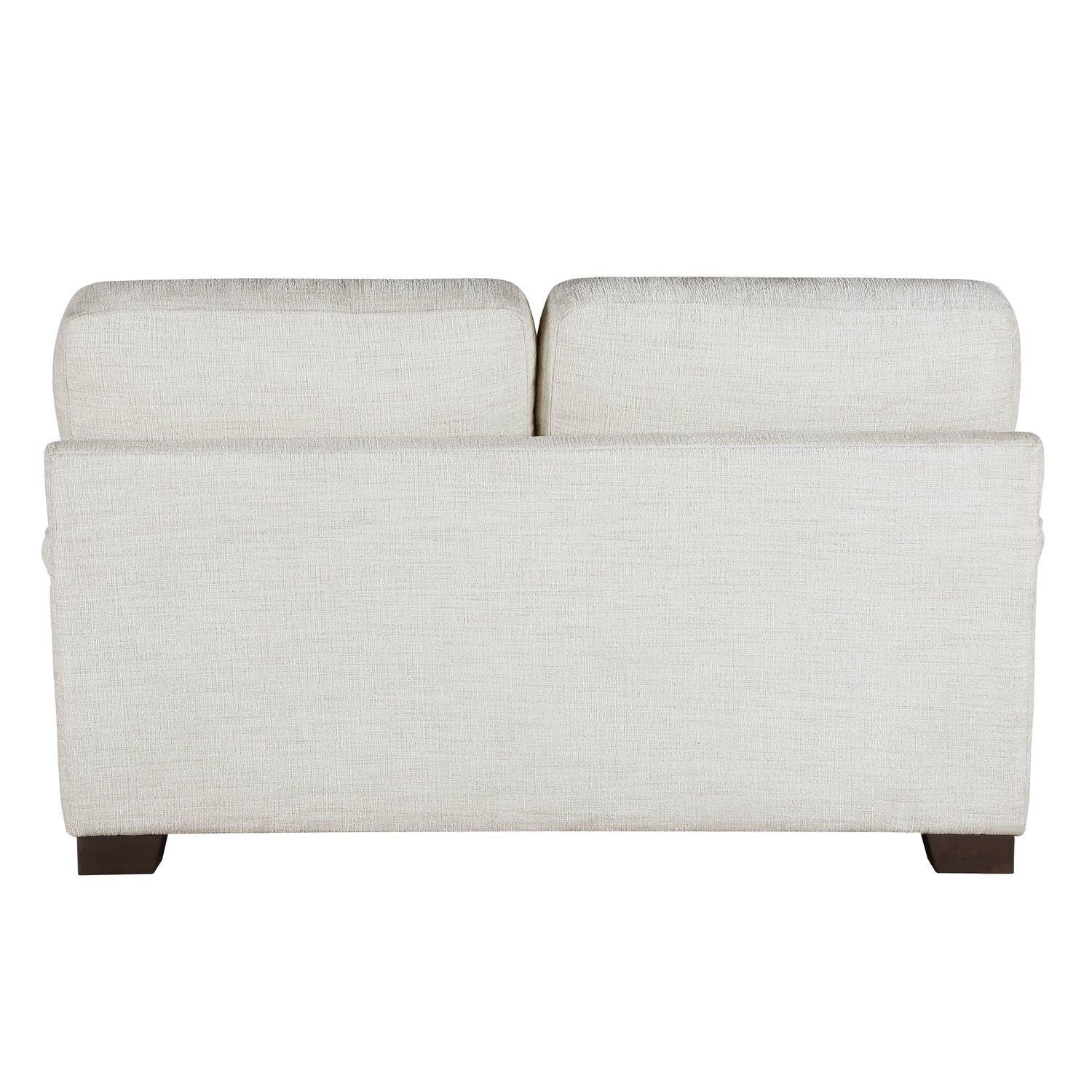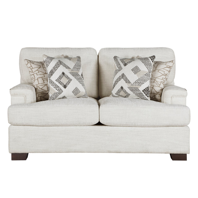 Subtle modern elegance lends its design inspiration to create the lines of the Orson Collection. Substantially sized for your comfort, the distinct profile of the love seat lends ample seating space to your living room. Cream chenille fabric upholstery covers the collection with espresso-hued wood legs providing support. Contrasting decorative toss pillows provide accent to the love seat.