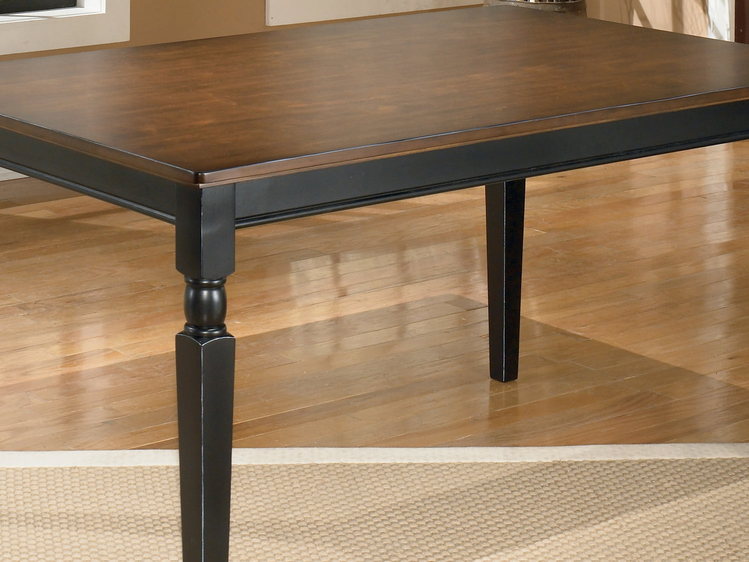 Series Features: Made with select veneers and hardwood solids in a two-tone finish. Table tops and chair seats are finished in a burnished brown color. The chair frames and table bases are finished in cottage black paint. Glued and screwed corner block construction.