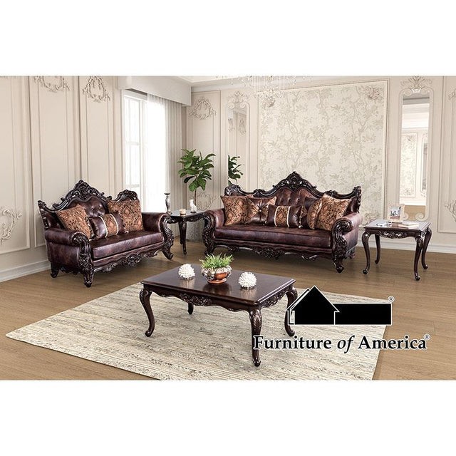 - Item Name: Palencia Dark Cherry/Brown Loveseat
