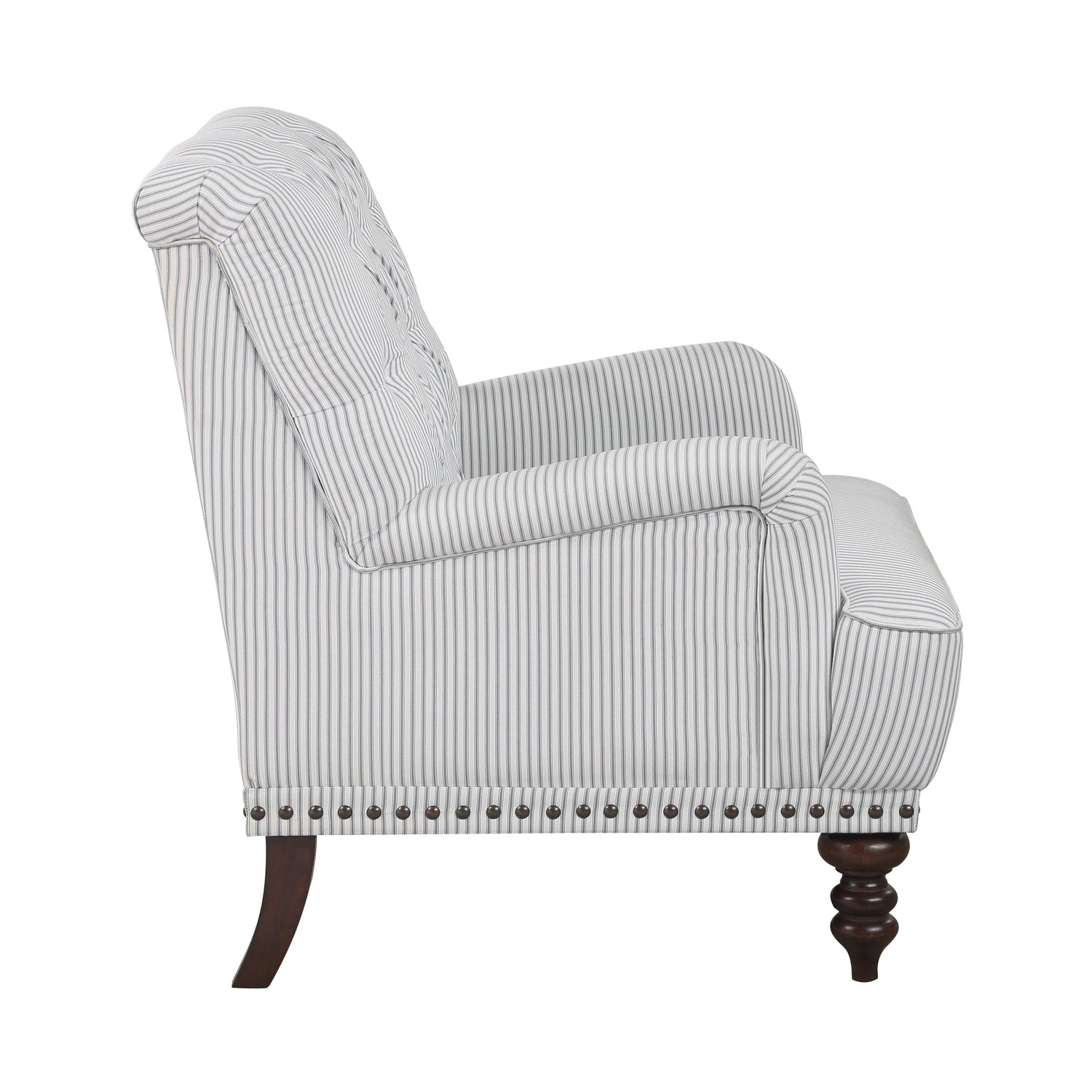 The holland park collection has an air of sophisticated history, which contributes to the collection's elegant style. classic accenting in the shape of turned legs and button tufting enhances the timelessness of the chair's overall design. these details have been custom-tailored to accentuate the chair's profile's elegant contours. the chair's upholstery is made of a striped fabric that is gray and white, and its neutral tone makes it the ideal addition to your home.