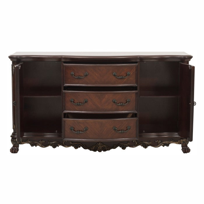 When you walk into the dining room that is now occupied by the deryn park collection, you will be quickly reminded of how much you adore the traditional look.this stunning server, which gives adequate room for exhibition as well as storage for your tables accessories, is regal from every vantage point because to the sophisticated design components that have been expertly combined to make it.the cherry finish is brought out by the gold tipping, which also serves to emphasize the classic character.