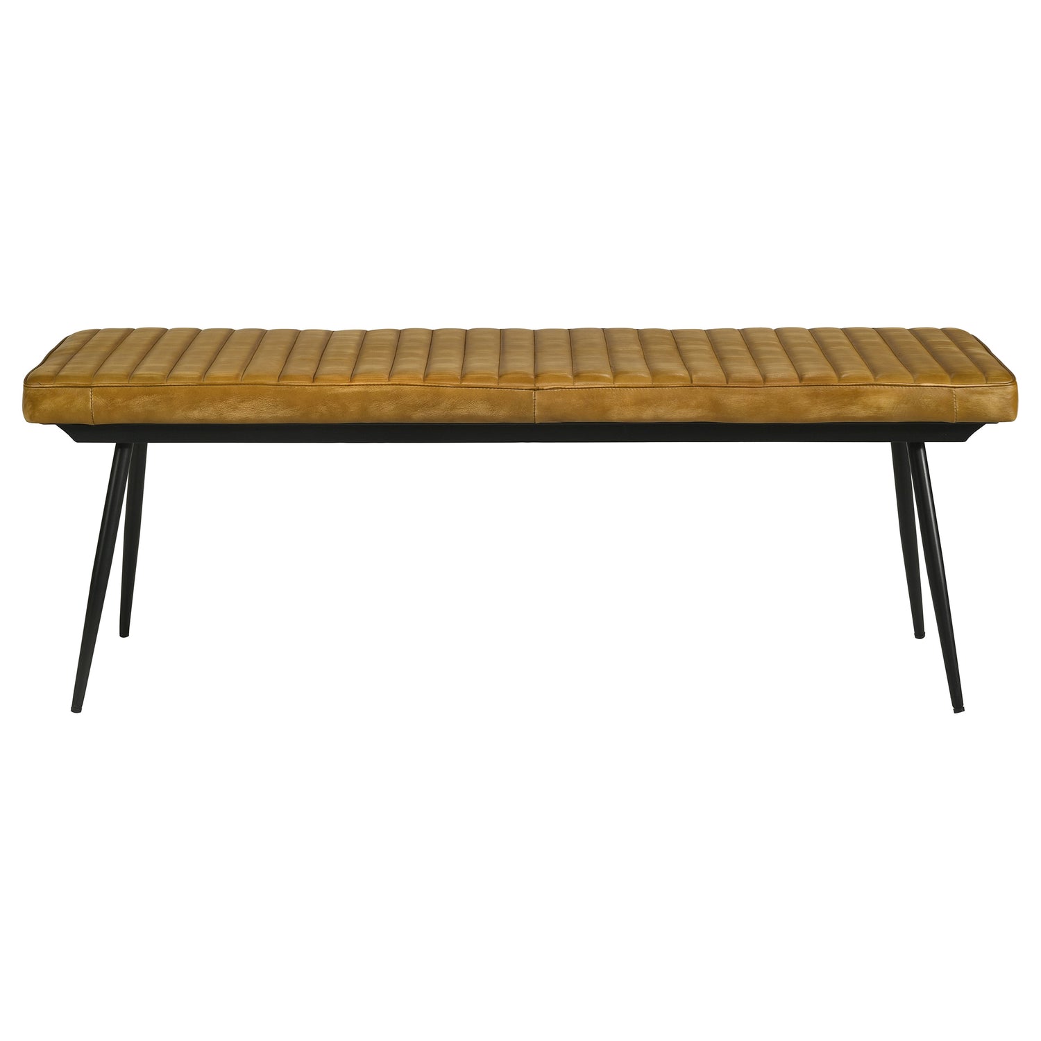 Attention to detail offers a calming sense of elegance to a casual dining set created for comfort and aesthetics. Start fresh with a set anchored by a natural finish sheesham table with a spacious rectangular top and tapered, rounded legs. A dark apron with geometric design detail adds an energizing effect. Mid-Century Modern influence styles easy side chairs with scoop seats and a thick back, both with channeling. Metal framing features iconic retro slender rounded, splayed legs, as a long dining bench opens up options for extra seating.