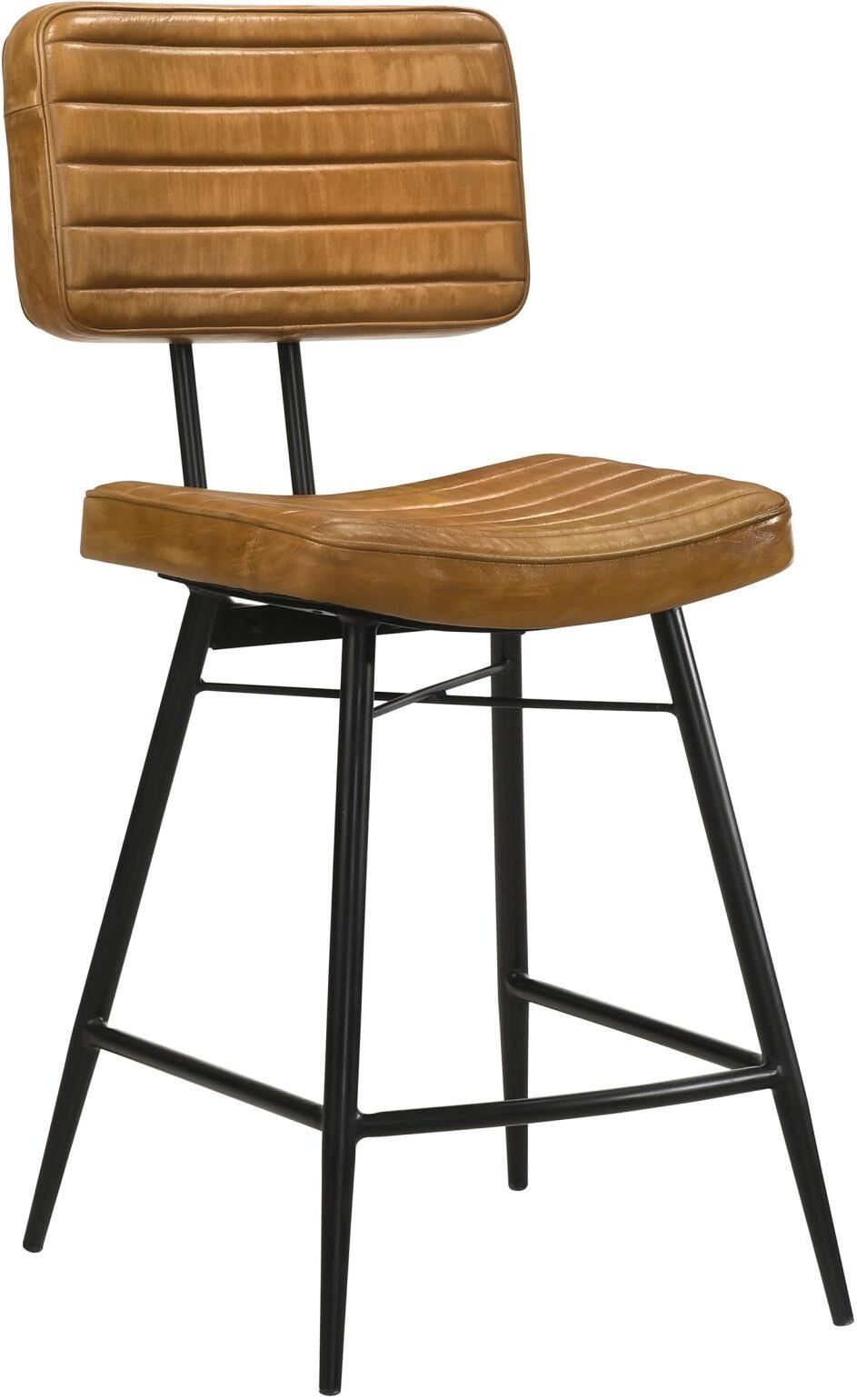 - Full leather upholstered retro style stools with hand rubbed dye in antique camel