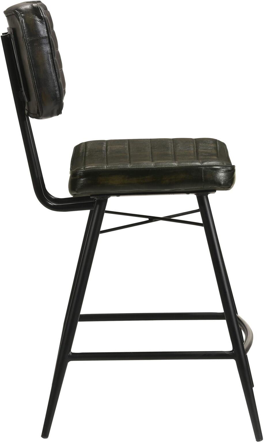 - Full leather upholstered retro style stools with hand rubbed dye in antique espresso