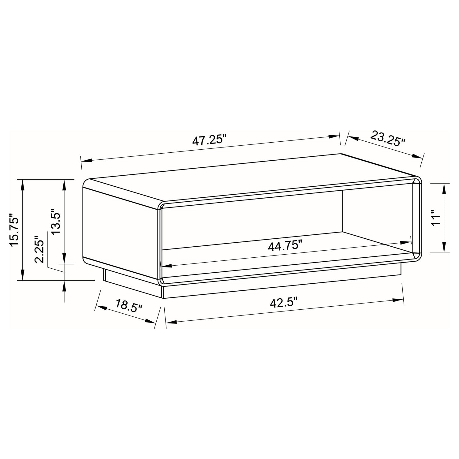 | Coffee Table | 47.25 | 23.25 | 15.75 | 47.3 |