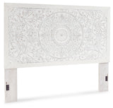 Live out your trendsetting free spirit with this king headboard. Exquisite carved medallion pattern is a testament to boho-chic style. Charming whitewashed finish sets a foundation for a room bursting with personality. Adjustable height design offers added flexibility.