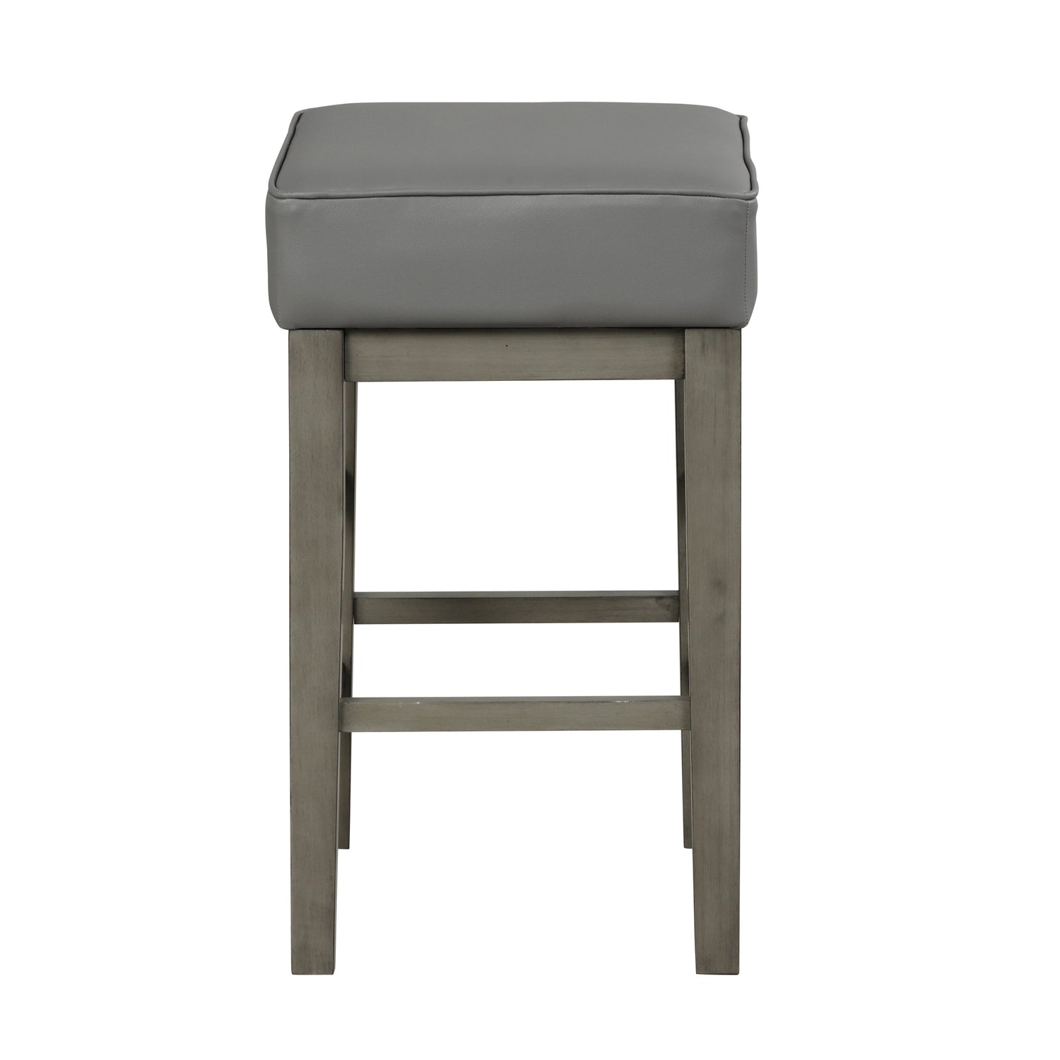 The pittsville collection is the ideal piece to incorporate into the informal dining areas of your house because of its transitional design aesthetic and versatile variety of pieces. the stool with a counter height of 24 inches can work wonderfully for you in any setting, whether you want to complement an existing table, add seats to your countertop, or create a spot for more relaxed socializing. the decorative versatility of this seat is achieved by pairing the square gray faux leather seat with wood framing that has an antiqued gray finish.